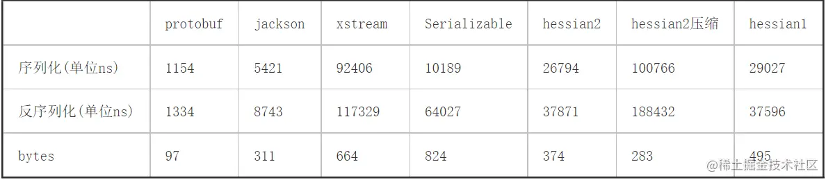 - Hessian:不区分语言,简单紧凑,支持加密压缩,除了是序列化协议,也是一个RPC框架