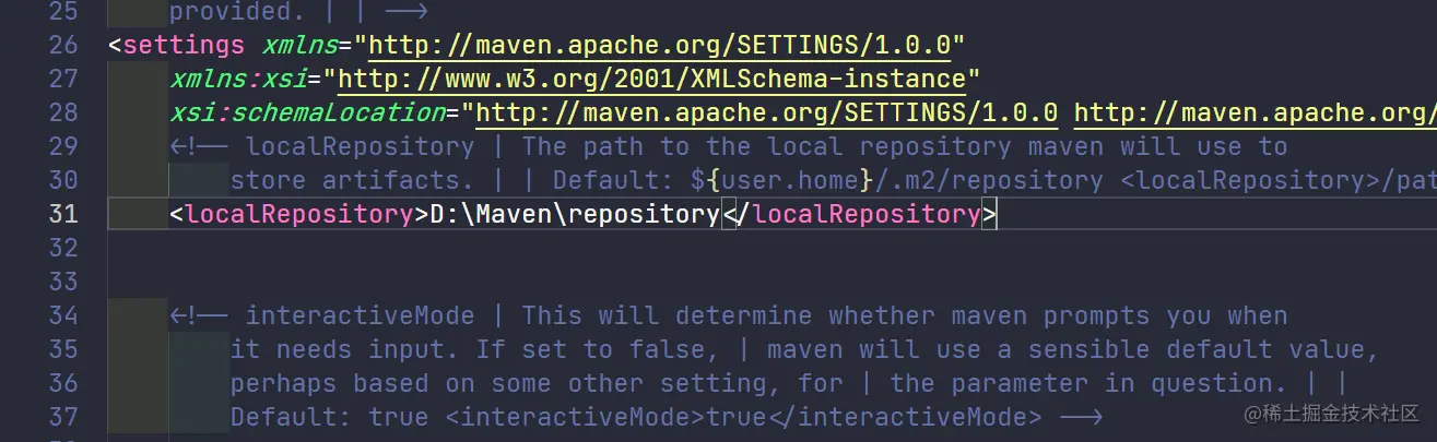 <localRepository>D:\Maven\repository</localRepository>