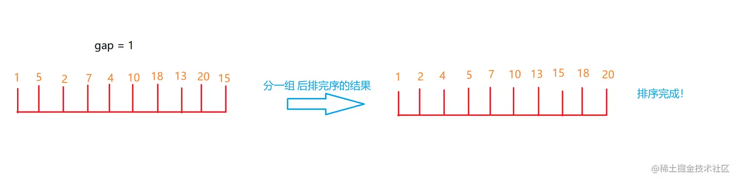 // 最后 gap = 1 时对整体再进行一次排序