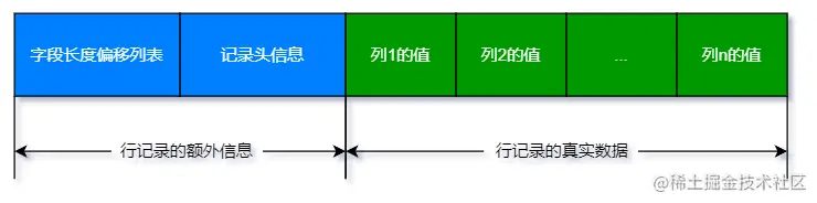 字段长度偏移列表 按照相邻两个偏移量的差值来计算各个列值的长度。并按字段顺序逆序存放。