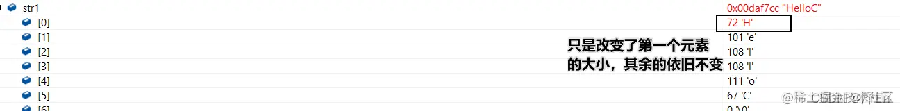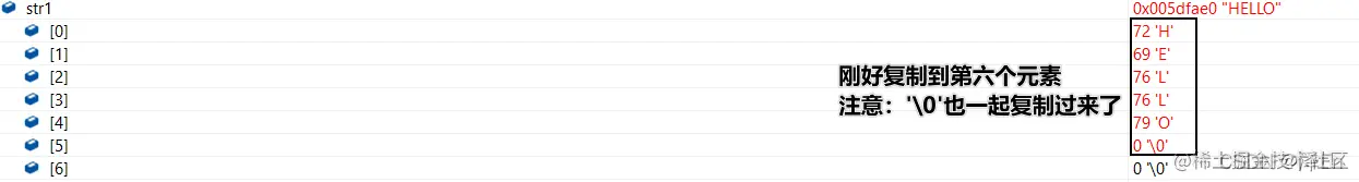 sizeof(str2) 相当于为 6个字节,因为 char 为一个字节 里面元素有6个包括'\0'