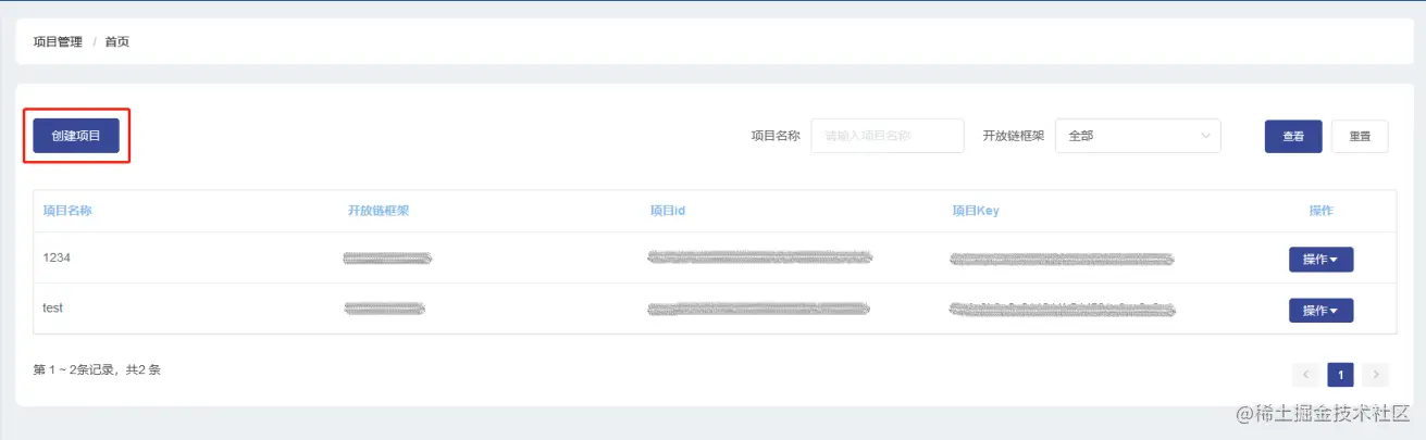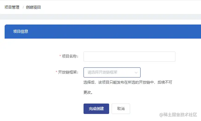 注意:项目创建完成后不允许修改开放链框架。