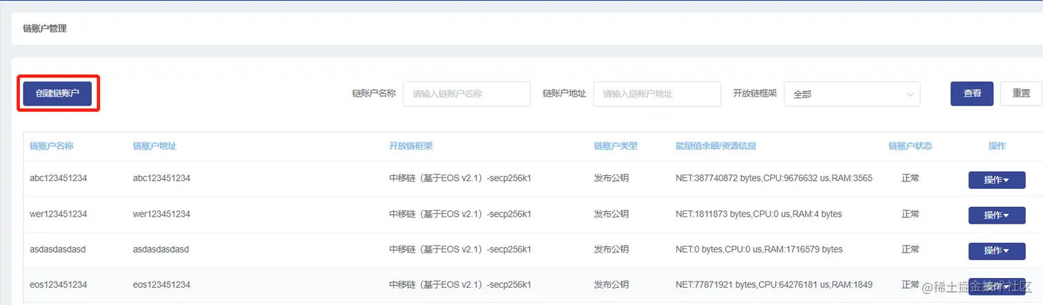 1.1 进入【链账户管理】模块,点击【创建链账户】按钮;