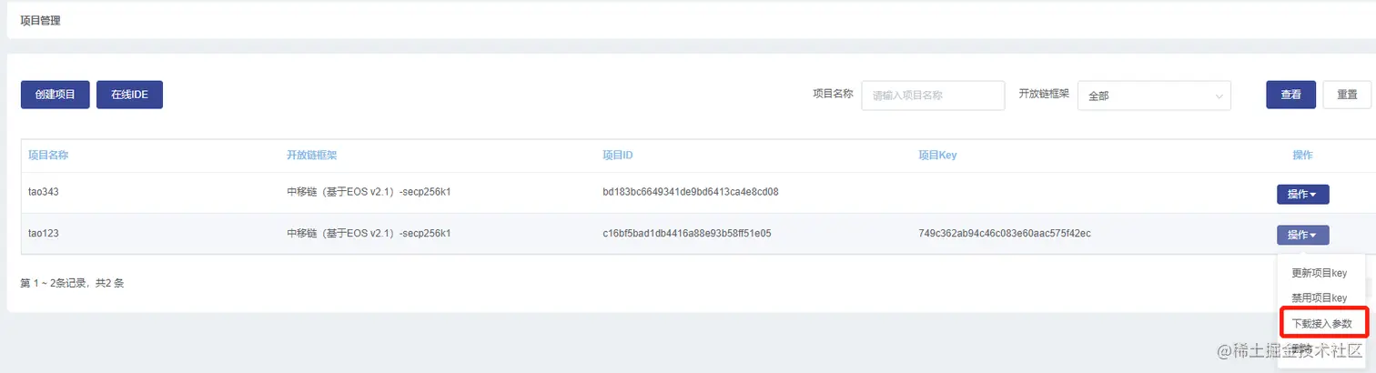 也可以从项目管理->操作->下载接入参数获取。