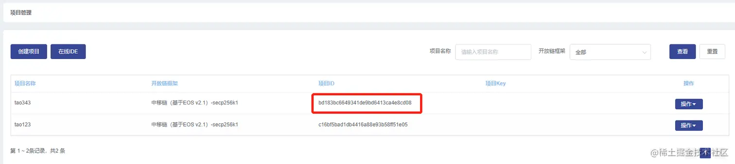 项目id:创建项目后生成的项目ID,见下图: