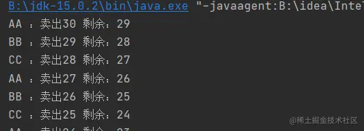 System.out.println(Thread.currentThread().getName()+" :卖出"+(number--)+" 剩余:"+number);