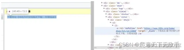 我们继续点击进去看到了文件的下载链接,为了能够使爬虫的代码更加简单我们来看看这个链接和之前li标签里的小说链接有什么不同编辑
