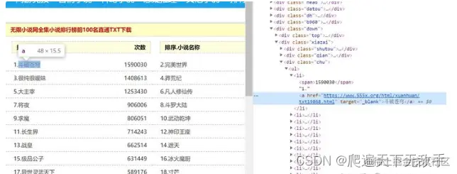 下面是获取页面每个小说的信息并构造下载链接