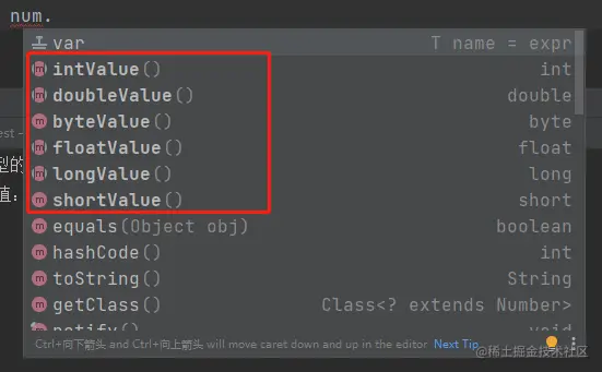 System.out.println("返回 int 类型的值:" + num.intValue());
