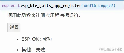 注册应用程序配置文件时,ESP_GATTS_REG_EVT会触发一个事件。ESP_GATTS_REG_EVT的参数是: