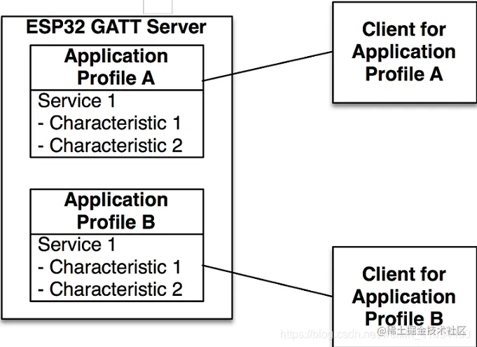 为实现配置文件(Profile)的设备定义了两种角色:Client(客户端)、Server(服务器)。esp32的ble一般就处于Server模式。