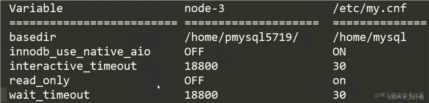 - 使用pt-config-diff 工具比较配置文件 (检查在运行中的配置和系统配置)