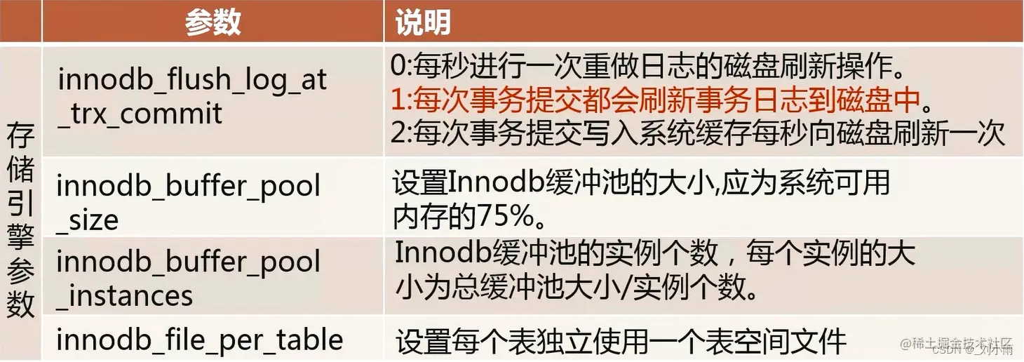 - 举几个mysql 中的关键性能参数