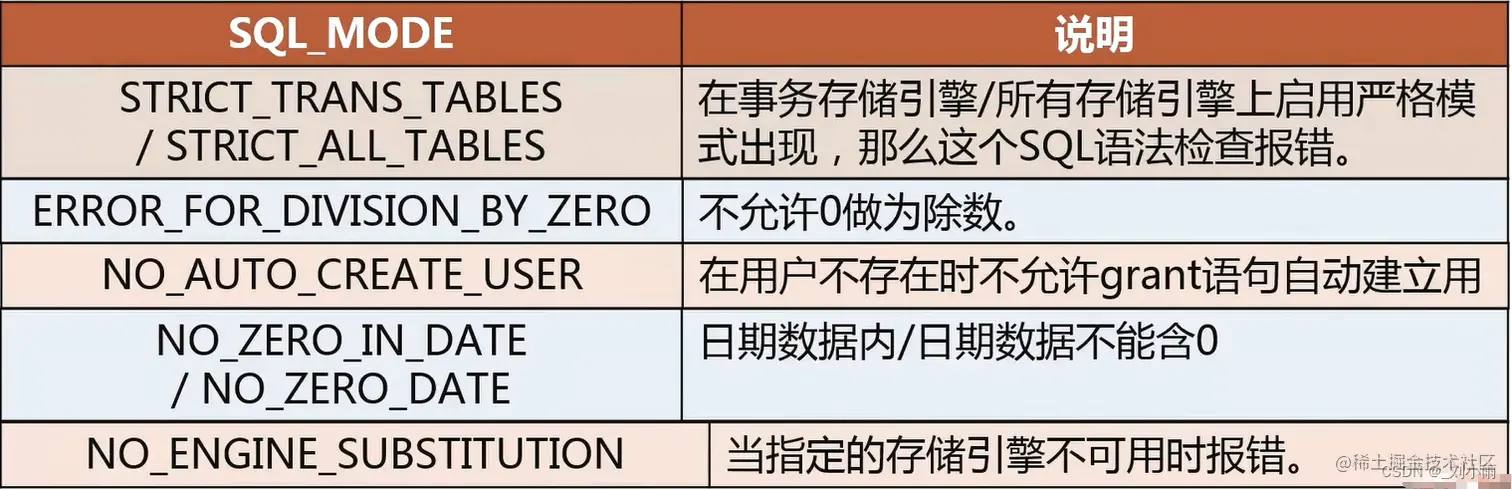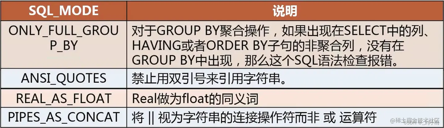 SQL_MODE值 : 会影响mysql 执行sql语句的结果。