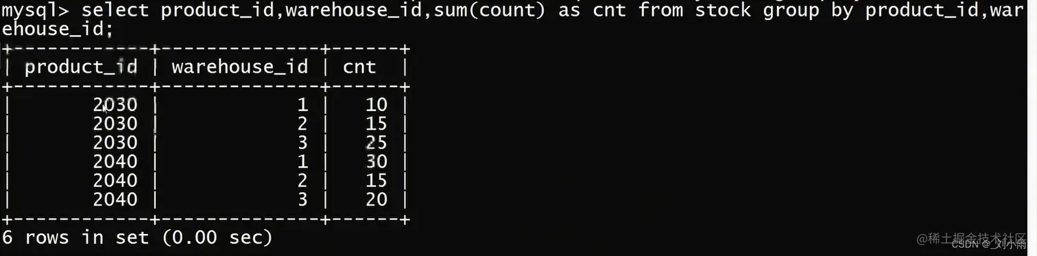select prodcut_id, warehouse_id, sum(count) as cnt from stock group by product_id;