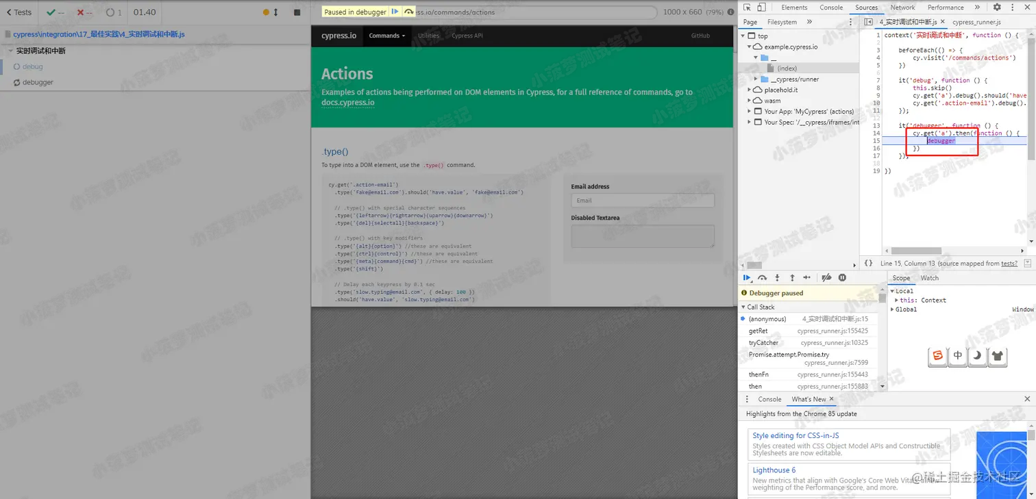 Cypress 提供了两种方式的 debug