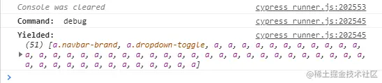 - 查询该元素(a 标签),如果没有立即找到它,Cypress会自动等待并重试一会儿