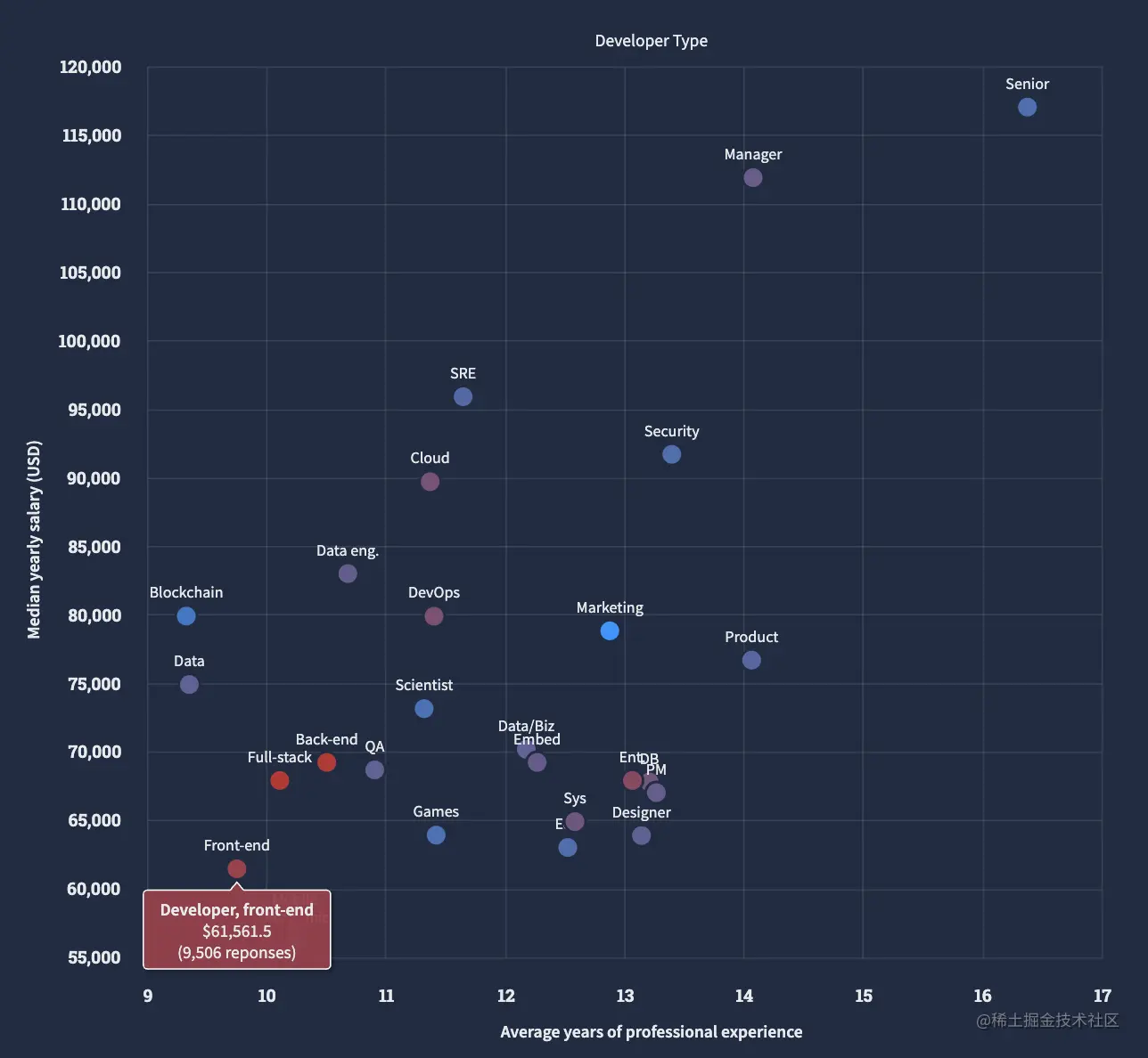 (5)不同类型开发人员的薪水和经验