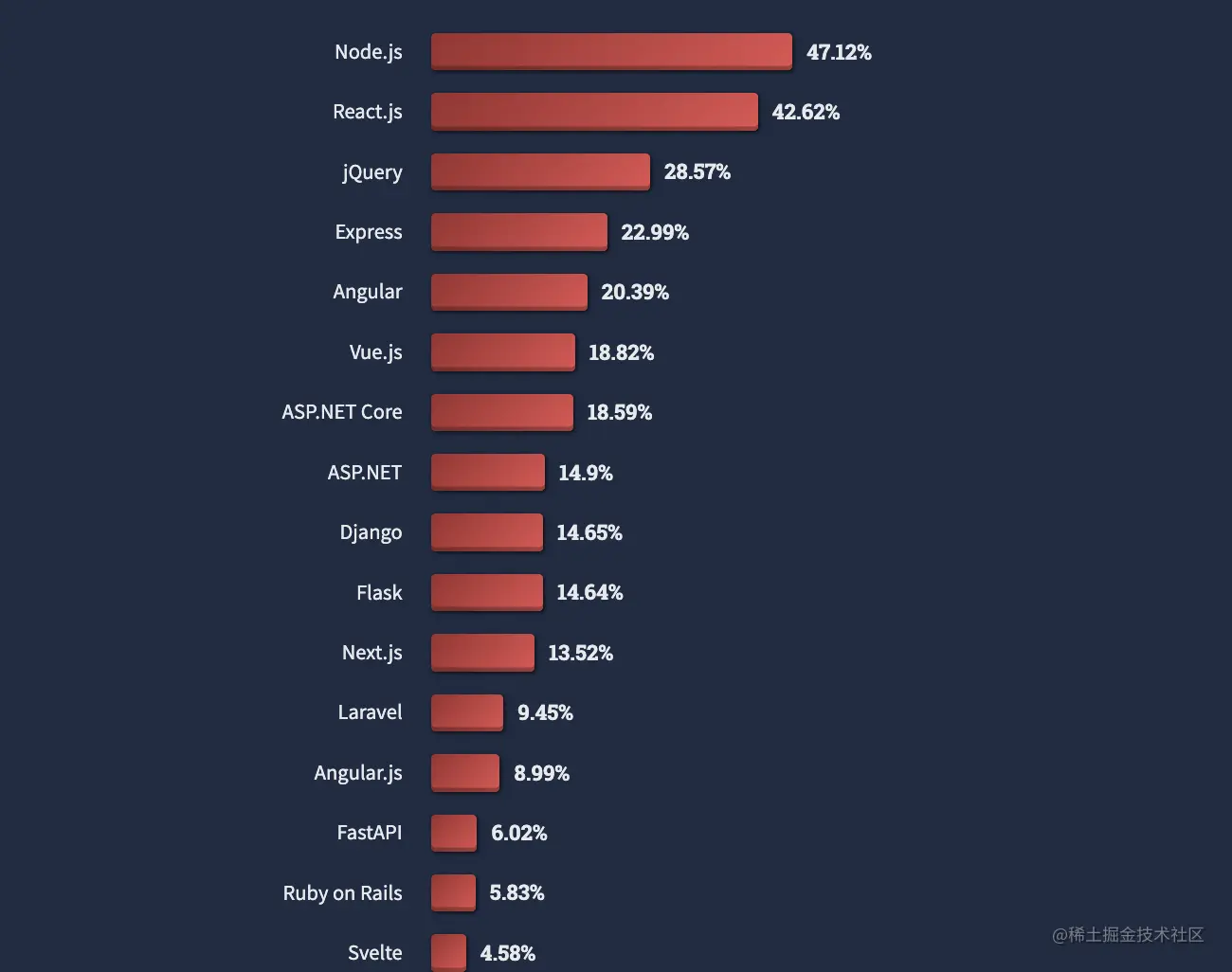 Node.js 和 React.js 是开发人员最常用的两种 Web 技术。