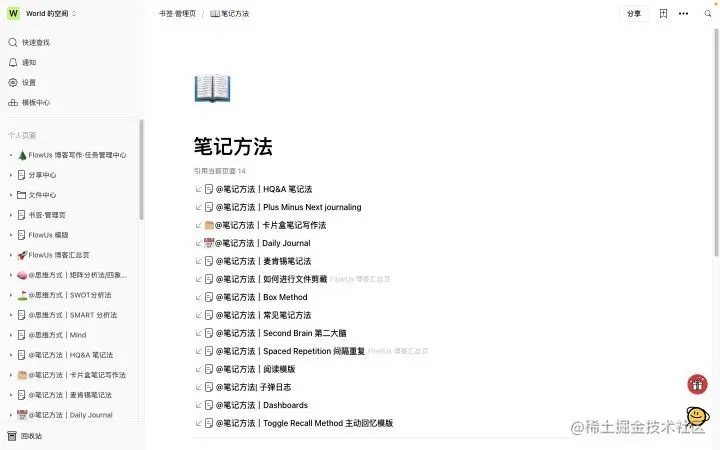下面我将以我选择的生产力工具——FlowUs 展示,我如何进行卡片盒笔记写作法的实践。