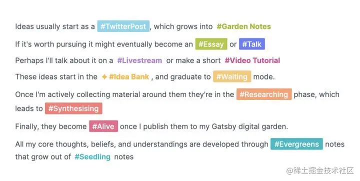 其次,卡片笔记写作法的核心,在于建立了一套记录笔记的工作流。不需要我多说,你也知道卡片笔记写作法要求你记录闪念笔记、文献笔记,并且最终转化为永久笔记。卡片笔记法的启示,在于我们要对笔记内容进行流程化、标准化的加工。重点是获得可供你随时调用的永久笔记。因此,你要反复对你的笔记进行重写。