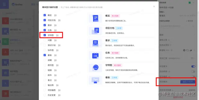 第2步,查看单个项目的甘特图。你可以在项目的模块中,勾选并使用项目甘特图。