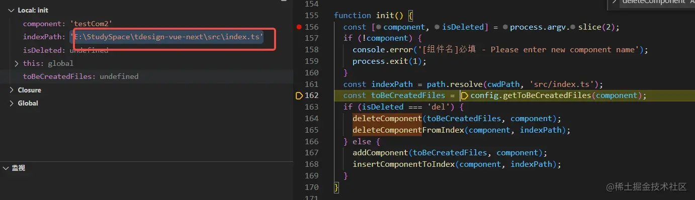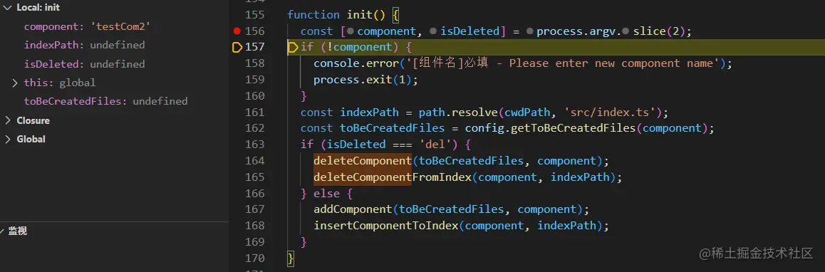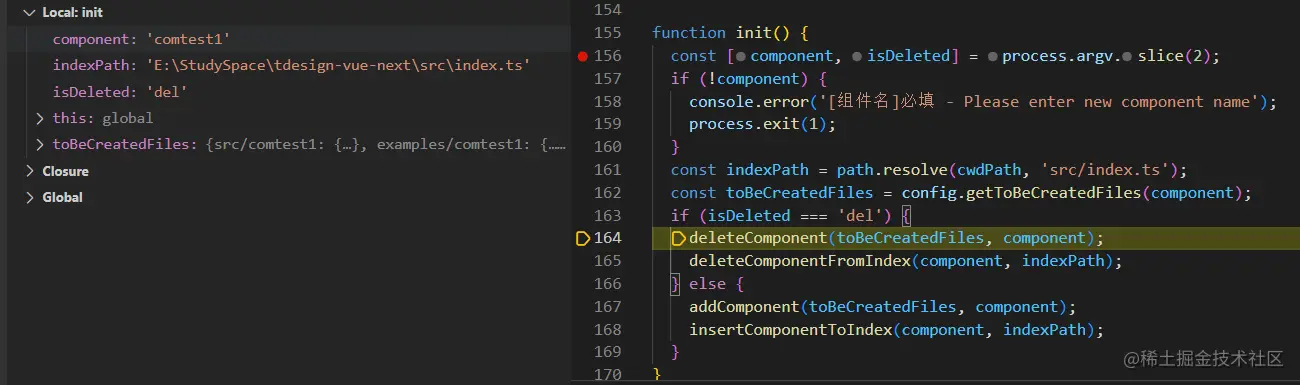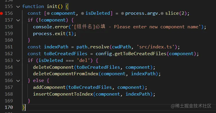 在script/init/index.js的init,如下图所示在156行打上断点: