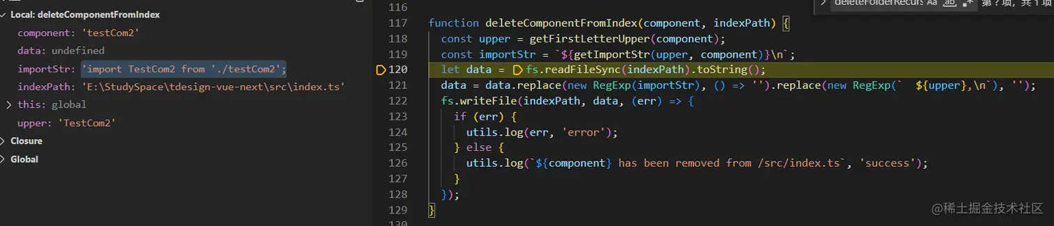 由于新增组件时,在src/index.ts文件中引入了新增的组件,所以删除组件的时候要把对应的import语句删除,代码如下: