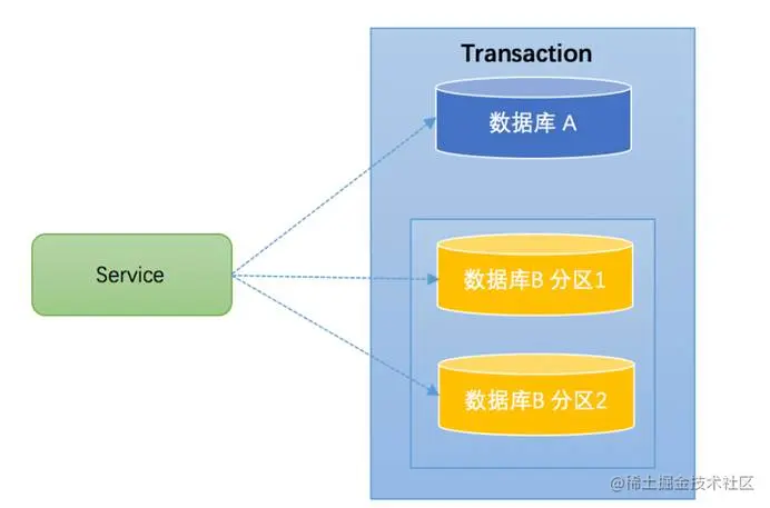 跨库事务:业务逻辑本身操作了多个库。