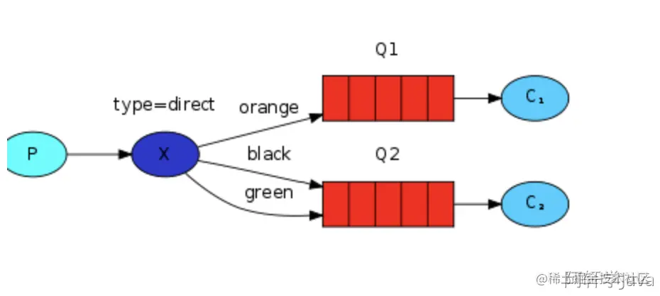 - 消息生产者将消息发送给交换机按照路由判断,路由是字符串(info)当前产生的消息携带路由字符(对象的方法),交换机根据路由的key,只能匹配上路由key对应的消息队列,对应的消费者才能消费消息。