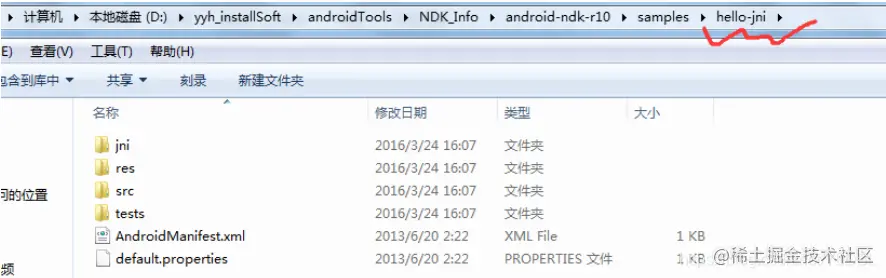在NDK文件android-ndk-r10的samples目录下,找个实例运行看看。如:我找到的“hello-jni”