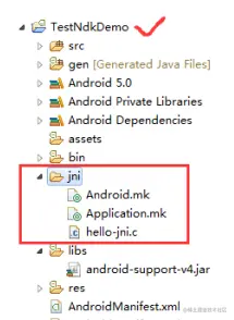 1、于是我自己随便新建一个android项目工程 TestNDKDemo