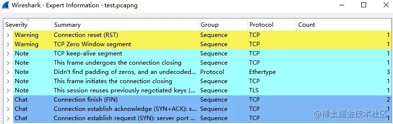 提供的跟踪文件简要信息如下,专家信息除了 TCP Keep-Alive 、TCP ZeroWindow 之外并无其他特别的告警信息。