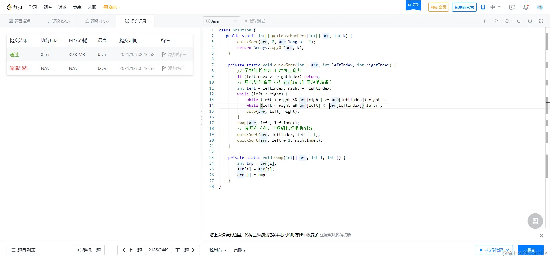 方法一:快排