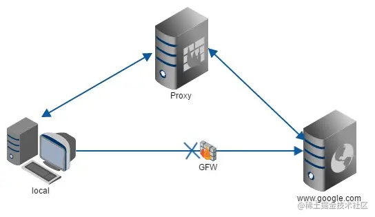 举例来说:某些科学上网工具扮演的就是典型的正向代理角色。用浏览器访问 www.google.com 时,被残忍的block,于是你可以在国外搭建一台代理服务器,让代理帮我去请求 google.com,代理把请求返回的相应结构再返回给我。