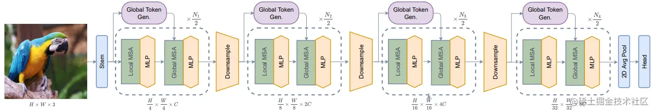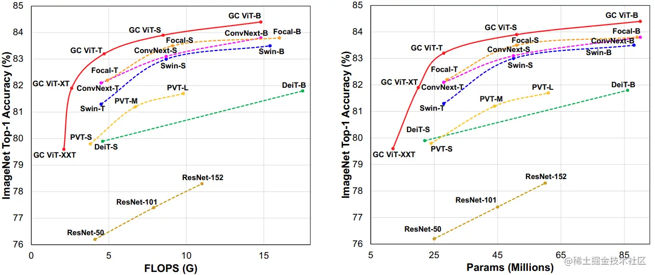 论文摘要:We propose global context vision transformer (GC ViT), a novel architecture that enhances parameter and compute utilization. Our method leverages global context self-attention modules, joint with local self-attention, to effectively yet efficiently model both long and short-range spatial interactions, without the need for expensive operations such as computing attention masks or shifting local windows. In addition, we address the issue of lack of the inductive bias in ViTs via proposing to use a modified fused inverted residual blocks in our architecture. Our proposed GC ViT achieves state-of-the-art results across image classification, object detection and semantic segmentation tasks. On ImageNet-1K dataset for classification, the base, small and tiny variants of GC ViT with 28M, 51M and 90M parameters achieve 83.2%, 83.9% and 84.4% Top-1 accuracy, respectively, surpassing comparably-sized prior art such as CNN-based ConvNeXt and ViT-based Swin Transformer by a large margin. Pre-trained GC ViT backbones in downstream tasks of object detection, instance segmentation, and semantic segmentation using MS COCO and ADE20K datasets outperform prior work consistently, sometimes by large margins. Code available at github.com/nvlabs/gcvi…