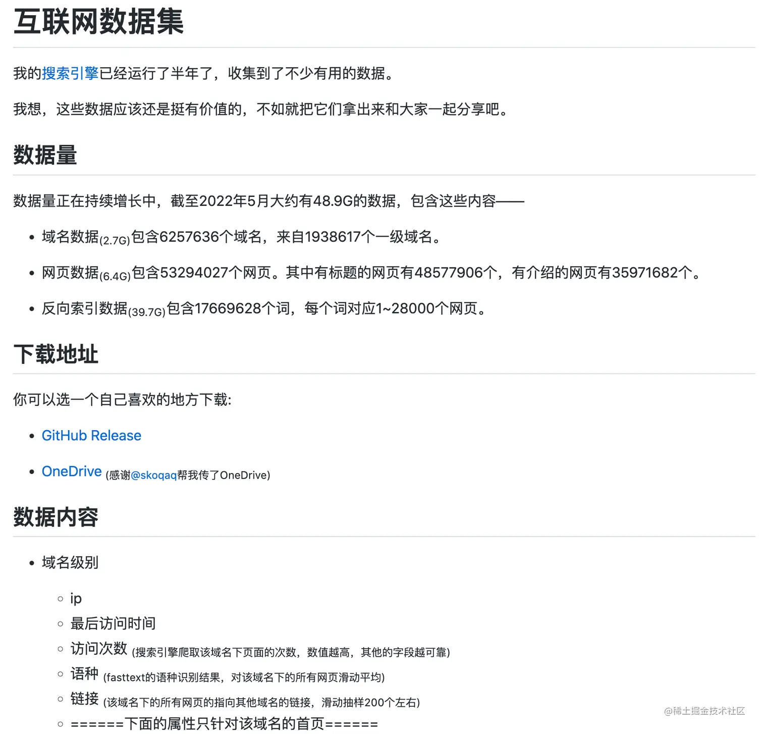 数据集整体数据量将近 50G,其中包括域名、网页、反向索引等数据。