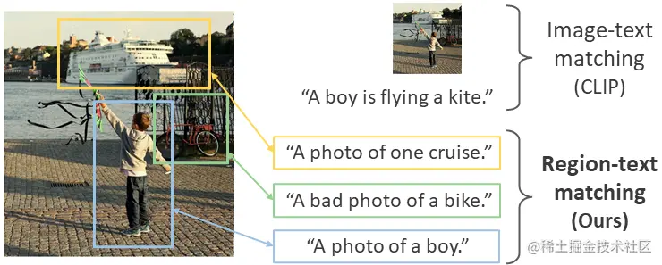 论文简介:However, we show that directly applying such models to recognize image regions for object detection leads to poor performance due to a domain shift: CLIP was trained to match an image as a whole to a text description, without capturing the fine-grained alignment between image regions and text spans./然而,我们表明,直接应用这样的模型来识别图像区域进行物体检测,会因为领域变化而导致性能不佳。CLIP被训练为将图像整体与文本描述相匹配,而没有捕捉到图像区域和文本跨度之间的细粒度对齐。