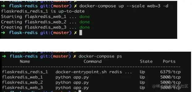 docker-compose up --scale web=3 -d