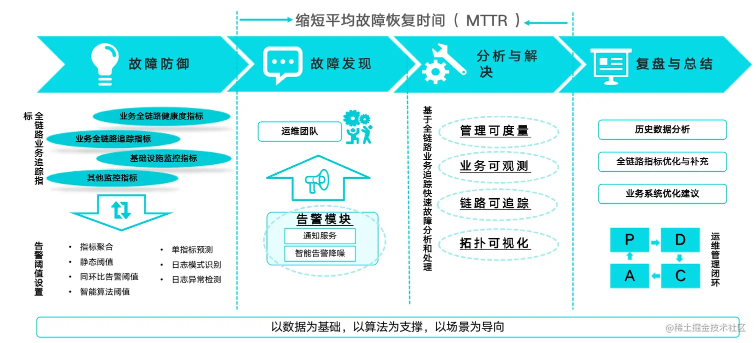 全链路业务追踪基本目标,显著缩短平均故障恢复时间。在运维过程的各个关键环节进行保障