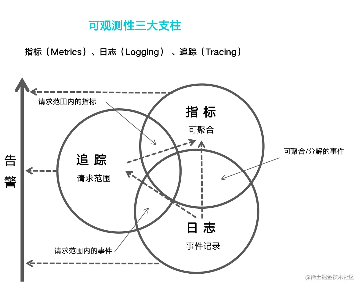 2017年,Peter Bourgon 提出的可观察性三大支柱——指标(Metrics)、调用链(Tracing)和 日志(Logging),这三个维度几乎涵盖了应用程序的各种表征行为,开发人员通过收集并查看这三个维度的数据(Telemetry Data)就可以做各种各样的事情,时刻掌握应用程序的运行情况。这已经成为当今可观测领域的标准,也是体系建设的地基。