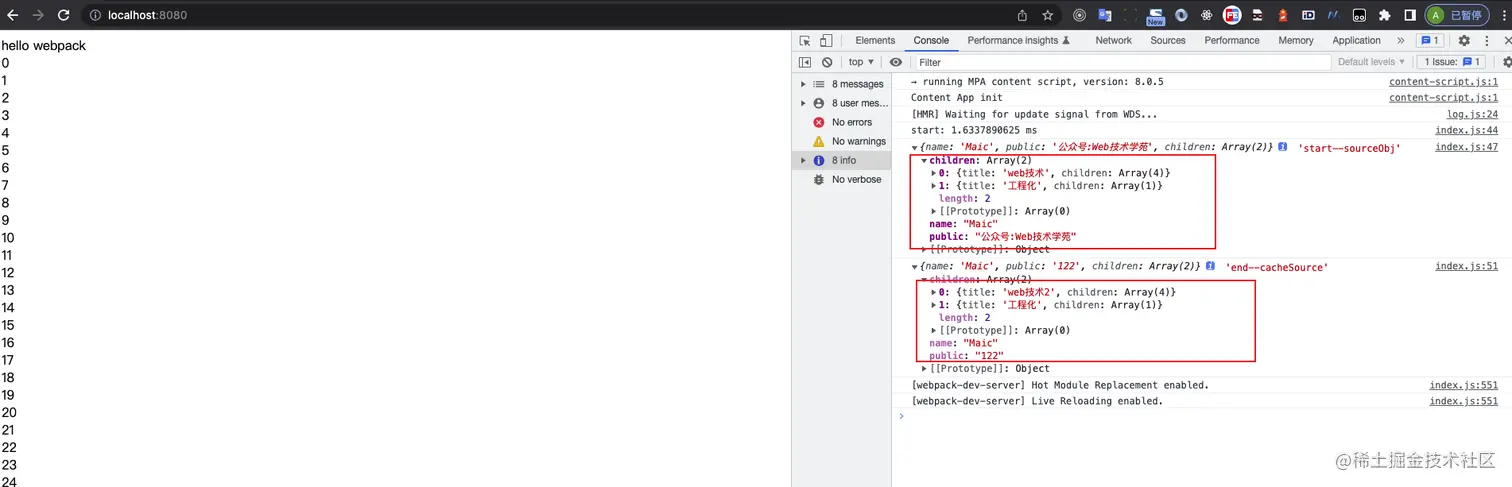 我们再来看另外一个例子,深拷贝对象,这是一个业务代码经常有用的一个函数,我们可以用memorize来优化,在webpack源码中合并内部plugins、chunks处理啊,参考webpack.js[1],等等都有用这个memorize,具体我们写个简单的例子感受一下