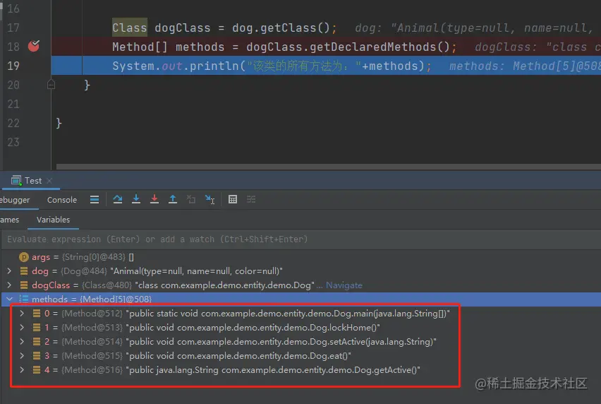 Method[] methods = dogClass.getDeclaredMethods();
