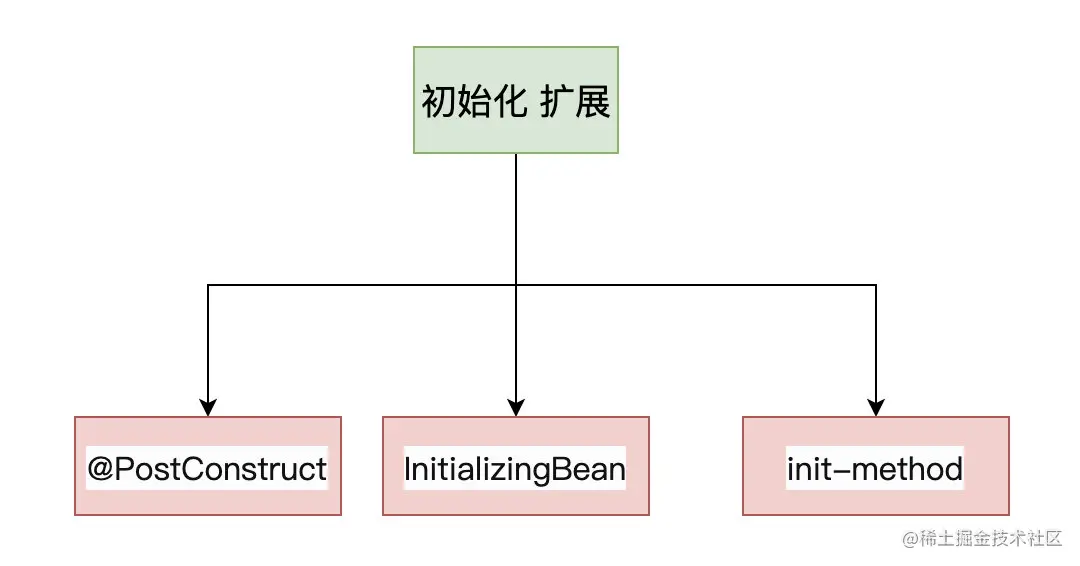 BeanPostProcessor相关子类的before方法执行完,则执行init相关的方法,比如说@PostConstruct、实现了InitializingBean接口、定义的init-method方法。