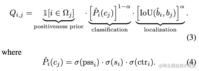 一对一的训练方式需要每次为GT选择最佳正样本,选择的时候需要考虑分类匹配程度和定位匹配程度,这里,先定义一个匹配分数: