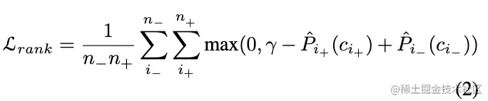 论文通过实验发现,在训练时加入ranking损失能提升性能,ranking损失的定义为: