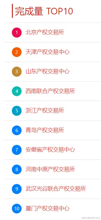 本周交易机构项目完成量TOP10有:北京产权交易所、天津产权交易中心、山东产权交易中心、西南联合产权交易所、浙江产权交易所、青岛产权交易所、安徽省产权交易中心、河南中原产权交易所、武汉光谷联合产权交易所、厦门产权交易中心