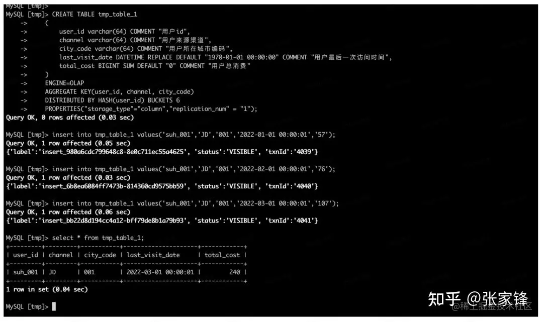 表结构中,Key 列分别是 user_id、channel、city_code ,Value 列是 last_visit_date、total_cost,他们的聚合方式分别为 REPLACE、SUM。