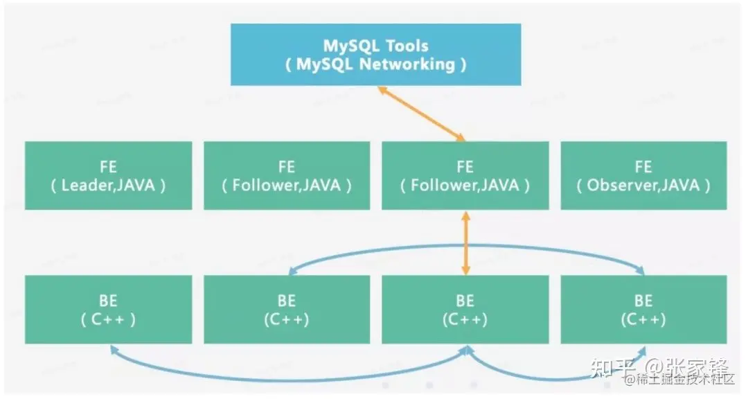FE 主要有有两种角色,一个是 Follower,还有一个 Observer,Leader 是经过选举推选出的特殊 Follower。Follower 主要是用来达到元数据的高可用,保证单节点宕机的情况下,元数据能够实时地在线恢复,而不影响整个服务。BE(Backend) 以 C++ 语言为主。 主要功能职责: