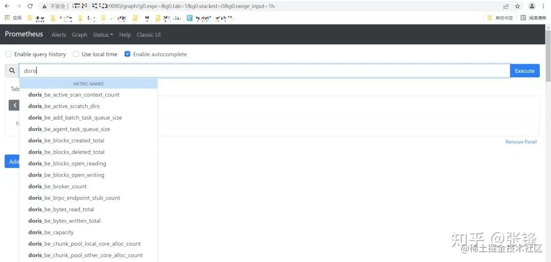 详细 Prometheus 安装流程请参考:*mp.weixin.qq.com/s/BcKN4s7qD…*需要确保服务启动完成后,可以正常访问:http://localhost:9090,且 Doris 的 metrics 已经打入 Prometheus 中。